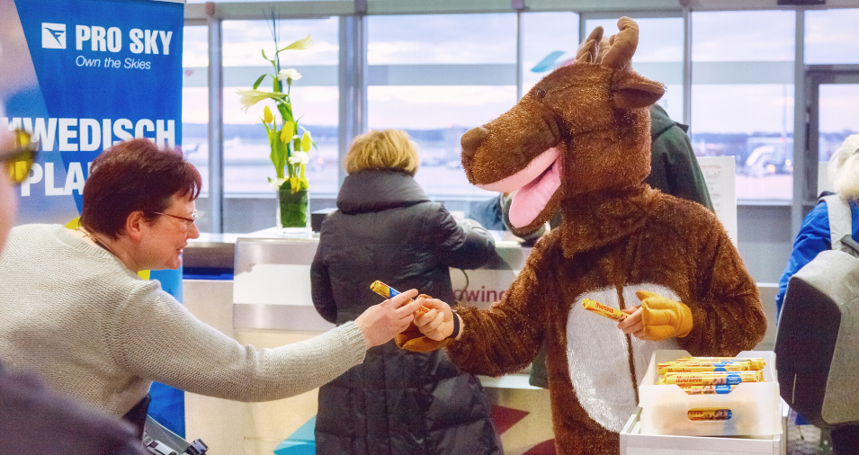 It’s the first connection of its kind from the North Rhine Westphalia region of central Germany: Pro Sky launched its non-stop flights from Cologne to Swedish Lapland on 17 January – and organised a “deer” little surprise for the passengers. “We are offering all-new opportunities with our new Cologne-Arvidsjaur connection. There were no non-stop or direct flights to here before,” explains Key Account Manager Michael Rölle. “That was a good enough reason for us to prepare a very special welcome for our passengers.”
