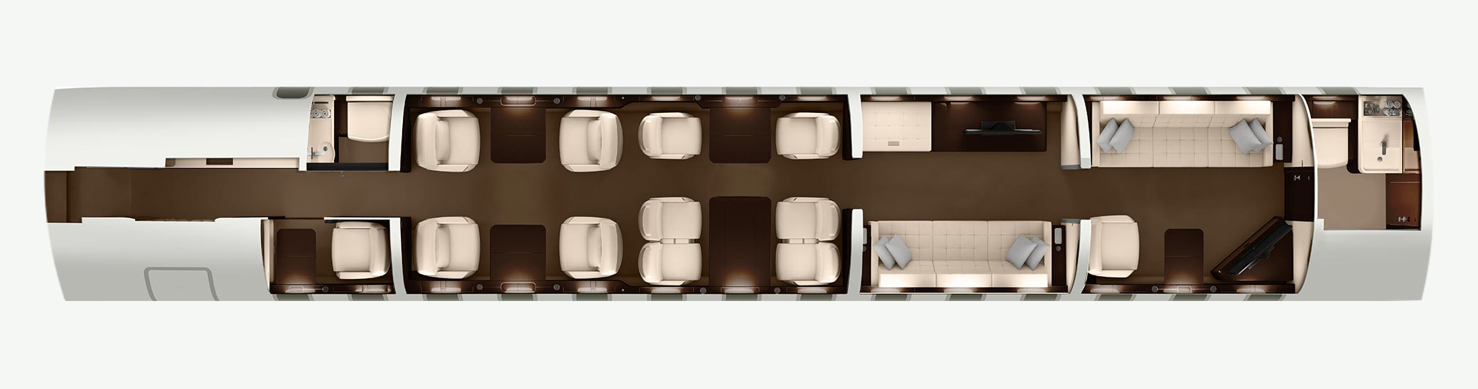 Lors du lancement de cet appareil, Bombardier annonçait d’emblée avoir relevé la barre en termes « d’espace, de confort et de souplesse du design intérieur » en matière de jet privé. Sa conception élégante et avancée comprend quatre véritables espaces habitables qui permettent à différents groupes de pouvoir se répartir facilement dans l'avion et profiter de chaque espace en toute tranquillité.